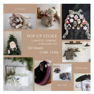 12月14日(sun)11:00-17:00 POP UP STOREを郡山市のLABOTTOさんで開催します。 ※喜多方の店舗はお休みになります 冬服やクリスマスクッキーなど、たくさんお持ちして開催します! ぜひご来店ください^^ Posted on 2025年12月7日 by user